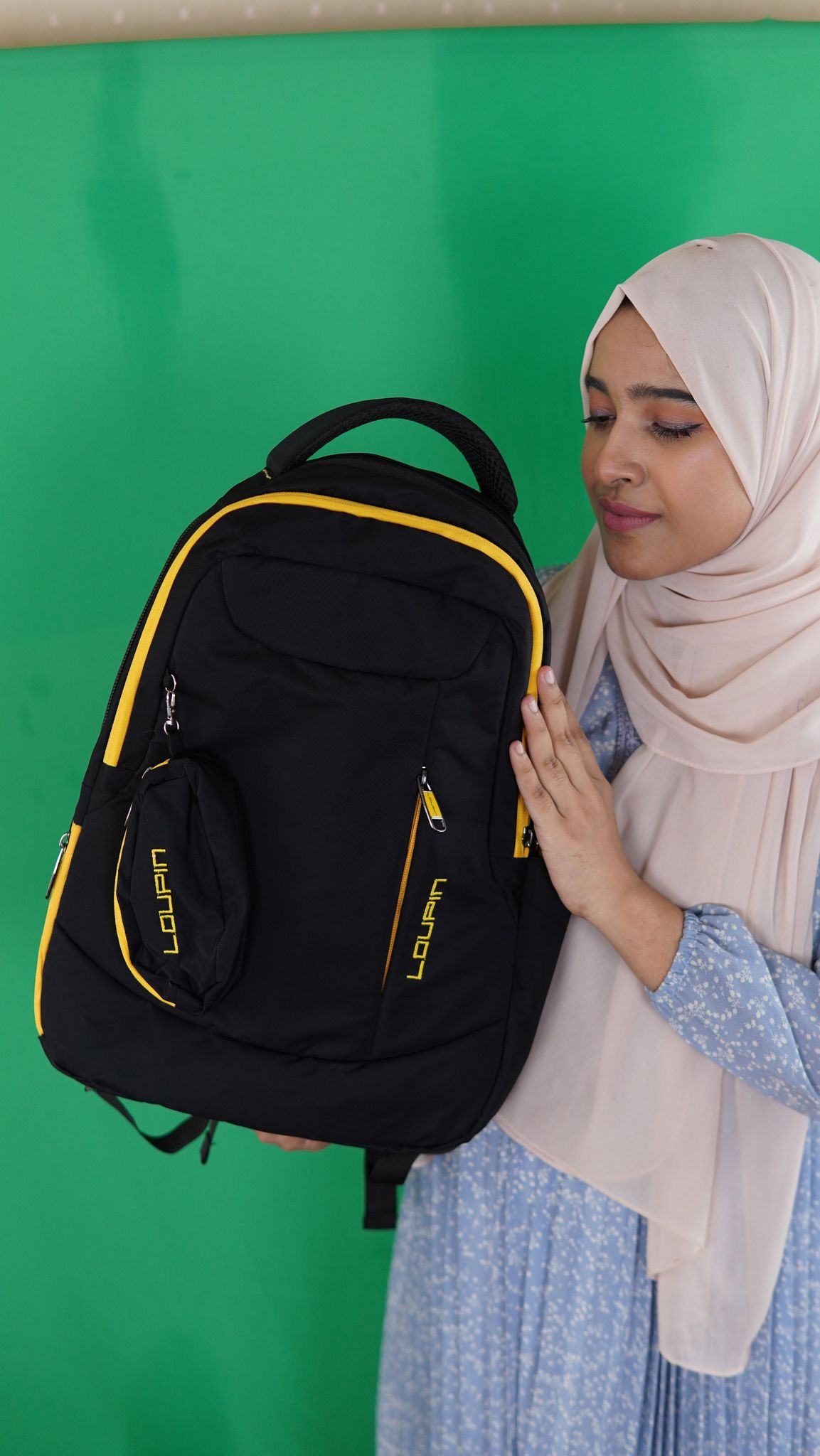 উচ্চতা এবং চওড়ায় : ১৮” X ১২”। এই ব্যাগটিতে ৩ টি বড় কম্পার্টম্যান্ড এবং ৫ টি ছোট পড় পকেট আছে, এবং এটিতে একটি ছোট আকৃতির অতিরিক্ত ব্যাগও দেওয়া হয়েছে। এটি বেশি ধারন ক্ষমতার চমৎকার ডিজাইনের তিনটি লেয়ারের ব্যাগ। এটিতেও High Quality Zipper ব্যবহৃত হয়েছে। High Quality Fabrics, Micro Fiber এবং Nylon দিয়ে তৈরি। ছোট একটি ফ্রি ব্যাগ সহ এটি দেখতেও বেশ আকর্ষনীয়।
